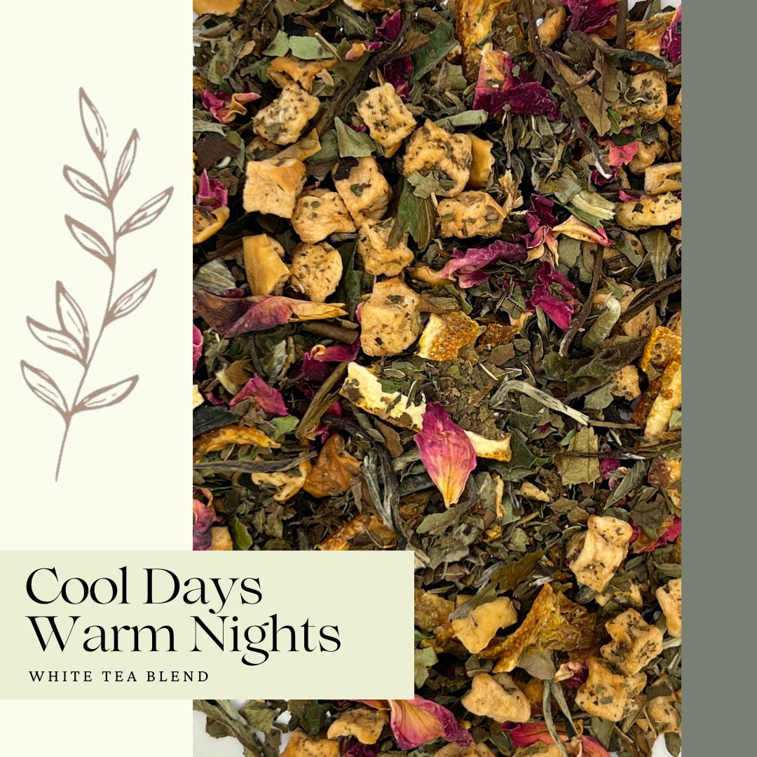 Cool Days Warm Nights - a light blend that's very low in caffeine, a lovely accompaniment to afternoon tea or those looking for a lighter cup after a meal.